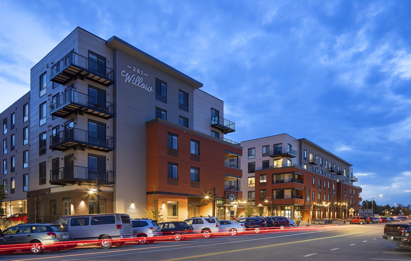 The vision for the site's redevelopment was to bring residential market-rate dwelling units to a site located on one of the oldest sections of the River District on the edge of Old Town. With the current enhancements and growth of downtown towards the river along Linden, the residential units will bring people to the urban core, activating the pedestrian focus of downtown's storefront nature. Following the revitalization of a very eclectic neighborhood with industrial and agricultural roots living in tandem with the trains that also shape the site, this new development encourages the visual articulation of buildings as defined by the community vision for an active and energetic downtown, of which the River District is an integral part.