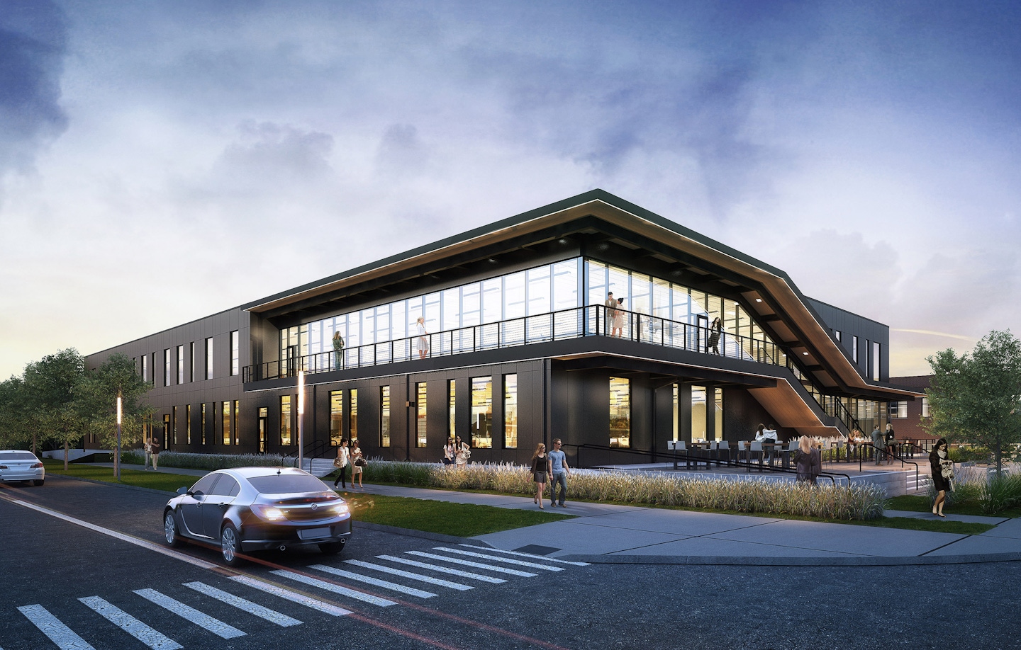 The project, located near OZ’s award-winning Loading Dock CLT building, seamlessly connects the 55th Street grid and local fabric to the lower office parking level via a prominently glazed exterior stair. The building also provides an open outdoor amenity deck and plaza for the surrounding properties.