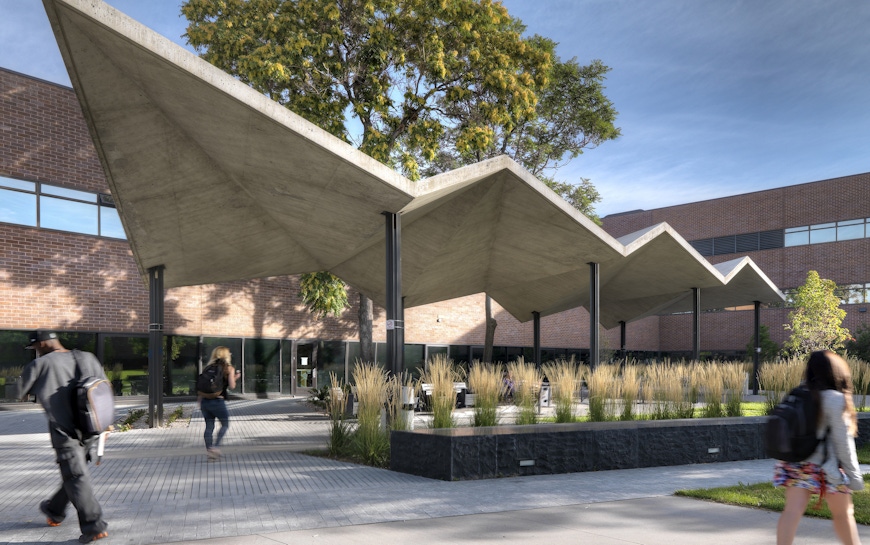 Formerly known as the nondescript South Classroom building, renovations to the Cherry Creek building helped to build a more positive image for CCD on the Auraria campus, presenting CCD as the incredible institution that it is. Updating the building not only brought that facility into the current era, but also created important campus community spaces that attract, engage and retain students. The Cherry Creek building renovations were designed to simplify wayfinding and create public spaces for students to gather and collaborate. The project included the creation of a central café with a strong connection to an outdoor pavilion, providing a dynamic space for students. This project also involved careful coordination to allow phasing, enabling the renovations to occur during the semester without disrupting the use of the building.