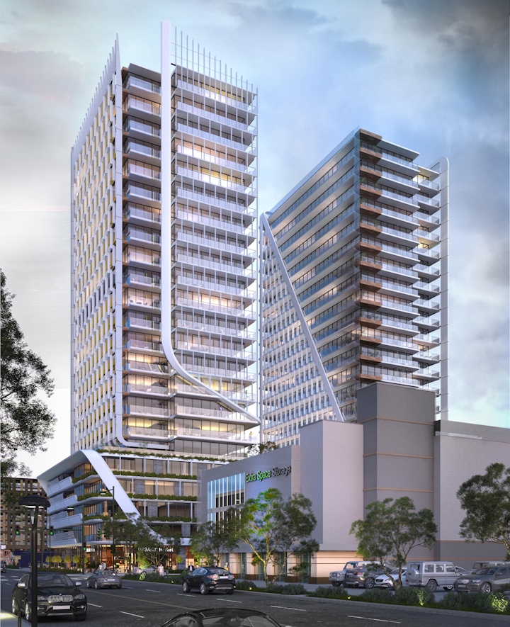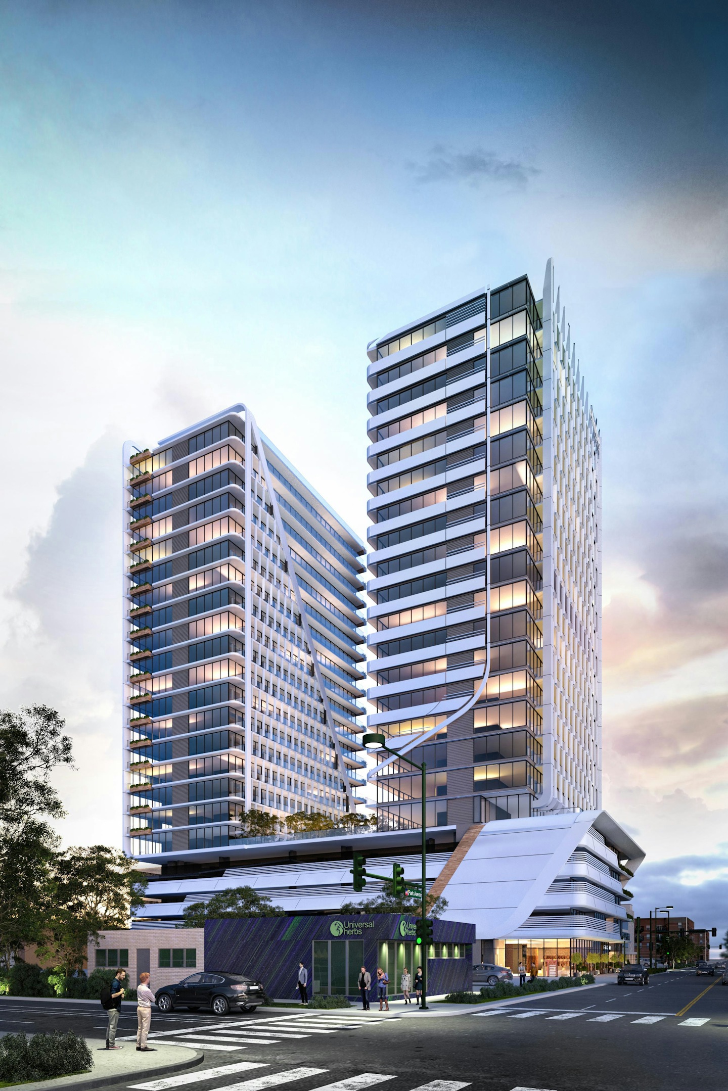 Two 23-story, 250' tall point-towers