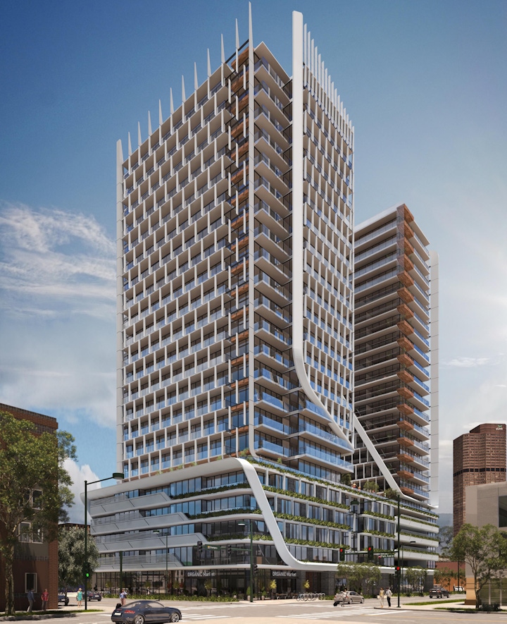 Evolve Towers, a 331-unit mixed-use residential project, is poised to become a gateway to Downtown Denver, found at the northern edge of the fast-growing Arapahoe Square neighborhood and just south of the Historic Cutis Park Neighborhood. Collaborating with design architect Sanzpont Arquitectura, the project is envisioned to be an environmentally responsible and sustainable structure that creatively integrates into the surrounding neighborhoods, helping advance their architectural character. The development is targeting a “net zero” goal, combining energy efficient technologies and construction methods with responsibly sourced materials. Totaling 420,000 sf, two point-towers come out of a podium comprised of ground-level retail space, above-grade parking on levels 2-5 with 280 parking spaces, and an substantial amenity floor that contemplates a private members-only club at level 6.