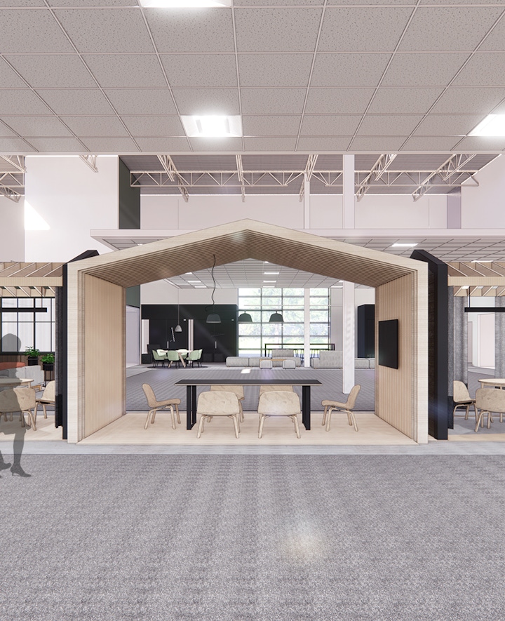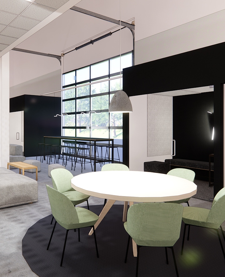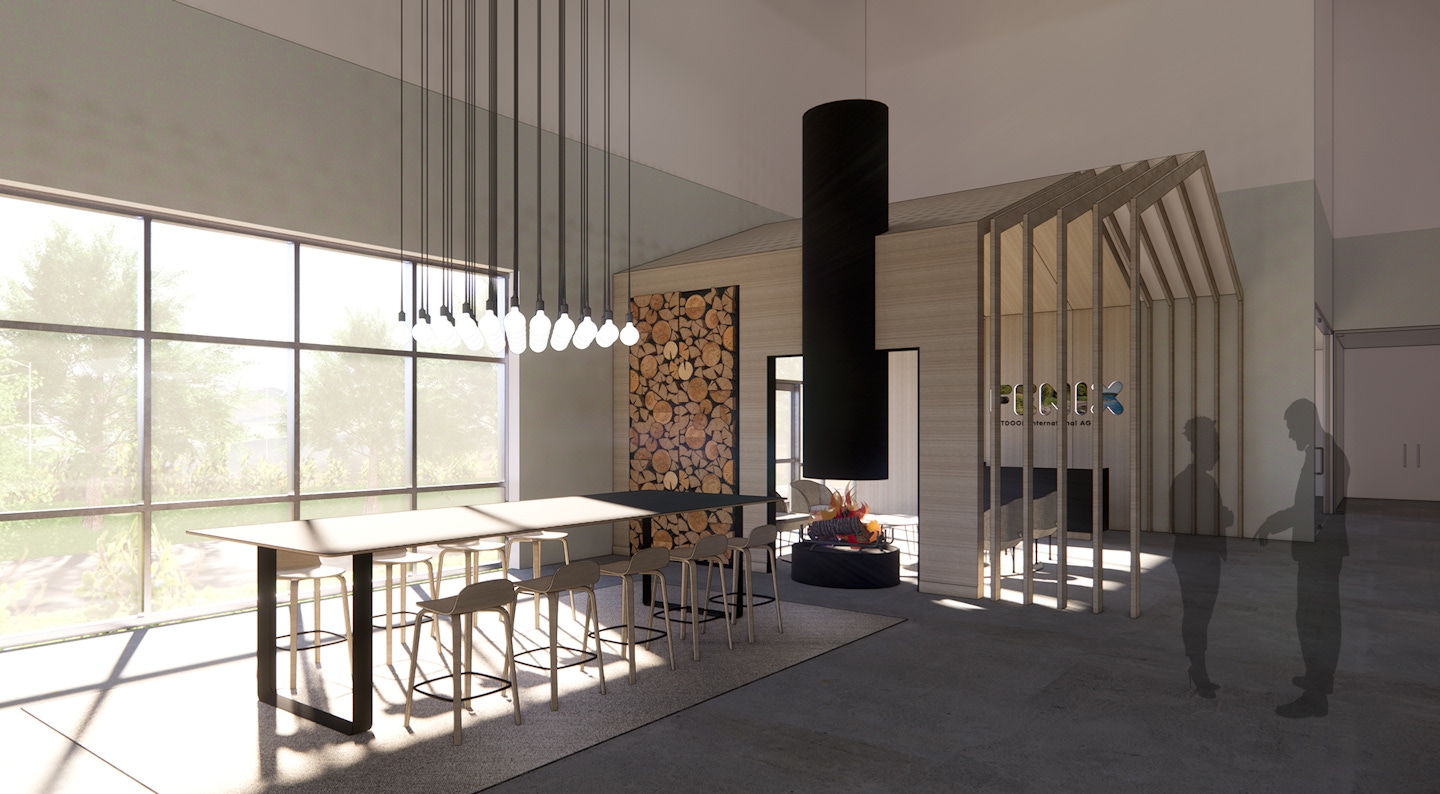 OZ also completed the design of renovation to their 20,300 sf office space in Louisville. Fenix Outdoor wanted to add a touch of Scandinavian design/hygge as a nod to their beginnings. Light wood with black accents help create the aesthetic and maintain a simplistic design. OZ also included a fun climbing rope installation representing their Royal Robin brand and its origins. The moment you enter the space, clients are welcomed into a “Warming Hut” atmosphere.