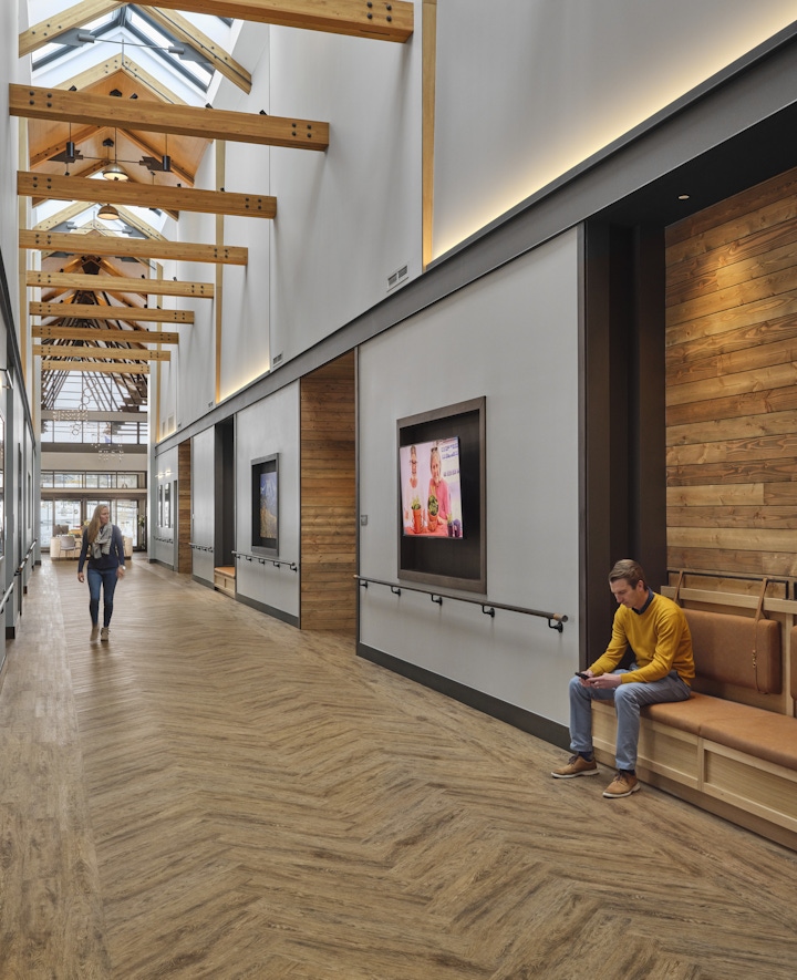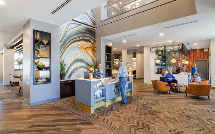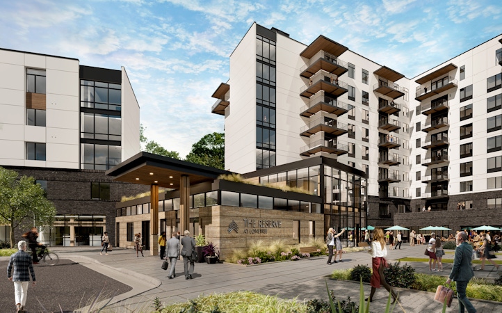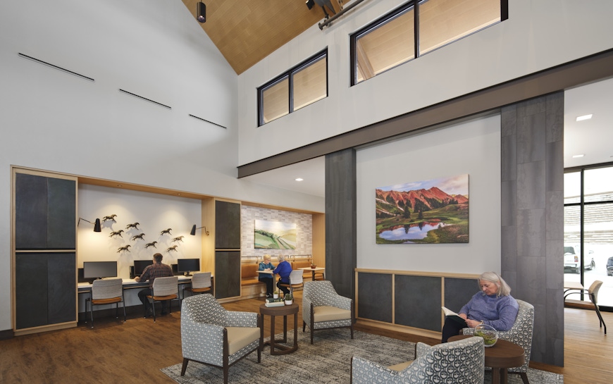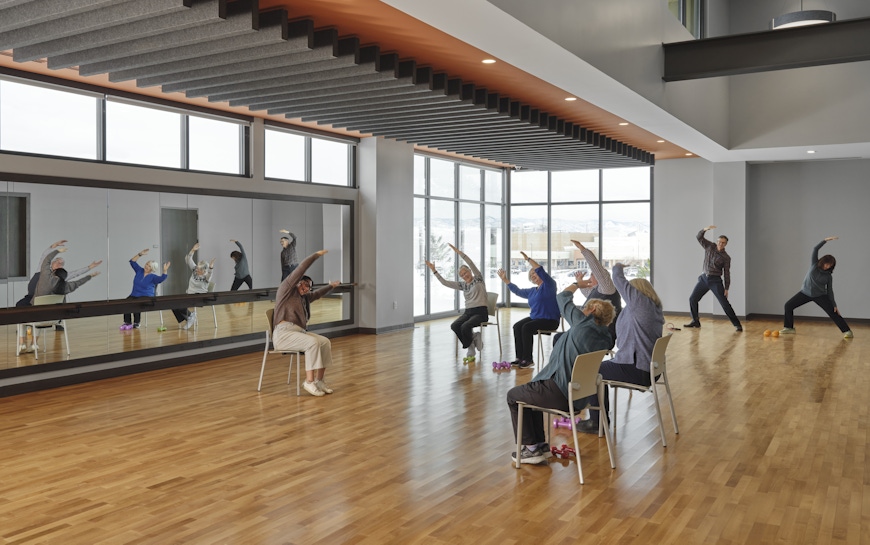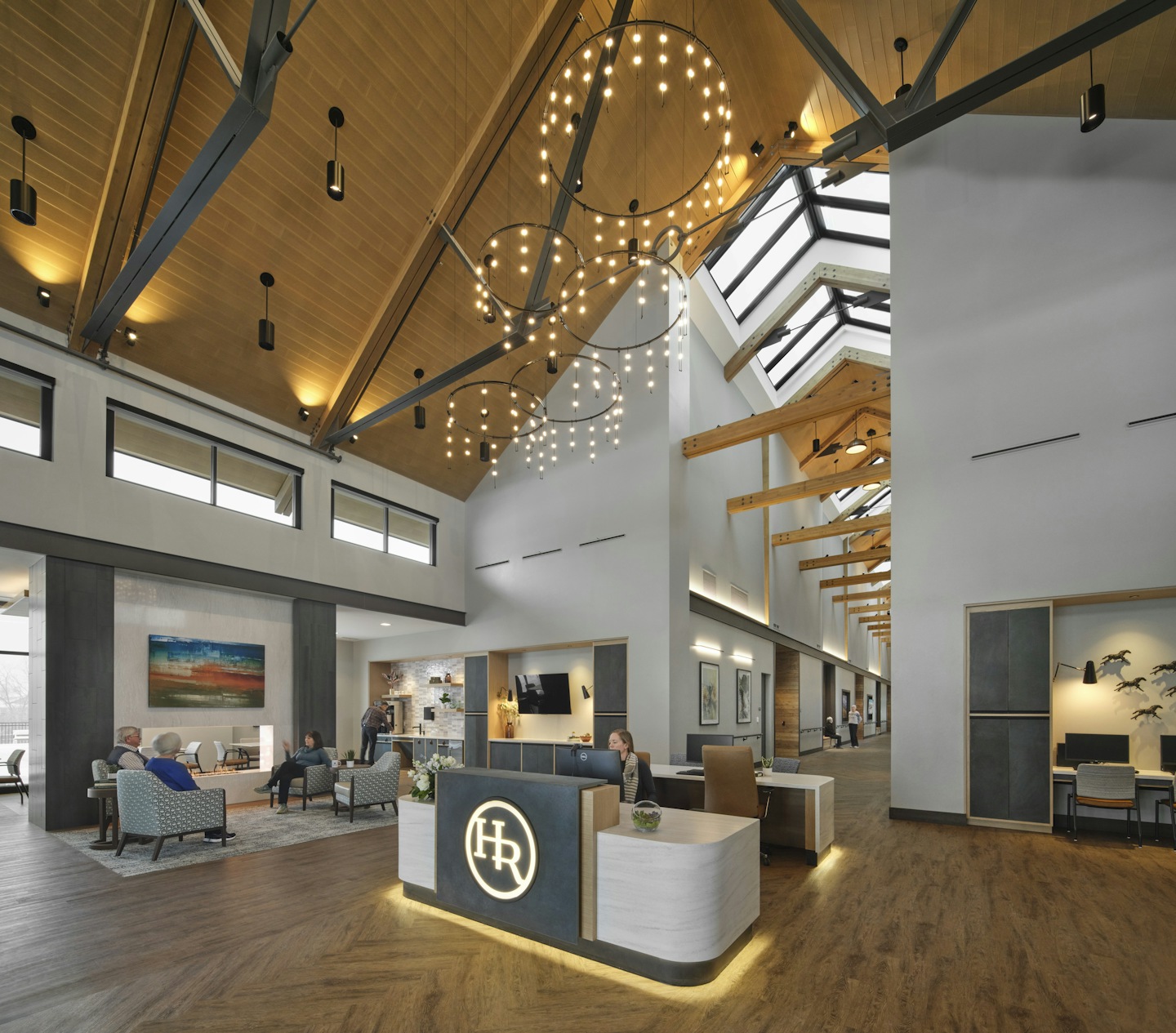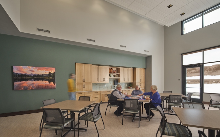 Serving as a central hub for aging adults, the Highlands Ranch Senior Center will offer services and programs for seniors and their families and integrates a satellite office for Douglas County Health & Human Services. As a result of collaborative planning by Highlands Ranch Metro District, Douglas County, and the community, the center arose from a 2017 feasibility study, influencing its location and design based on senior population needs. The state-of-the-art facility features a health club, activity rooms, and a spacious event space. The facility will also feature on-site admin and office space for social services, providing information, resources, and referrals for community members. Designed to seamlessly blend with the community, it incorporates stone, wood accents, and pitched roofs, emphasizing comfort and familiarity while integrating modern construction materials and abundant natural light to create a serene setting for seniors to access vital services.