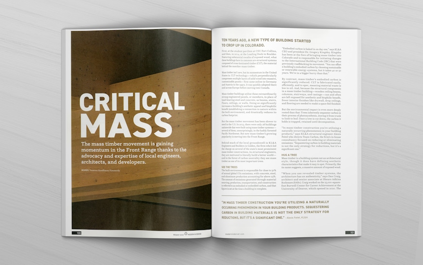 We look forward to sharing more on progress in this regard work soon. In the meantime, head over to the Winter Issue of Modern in Denver to learn more about the history – and the future – of mass timber here in Colorado.