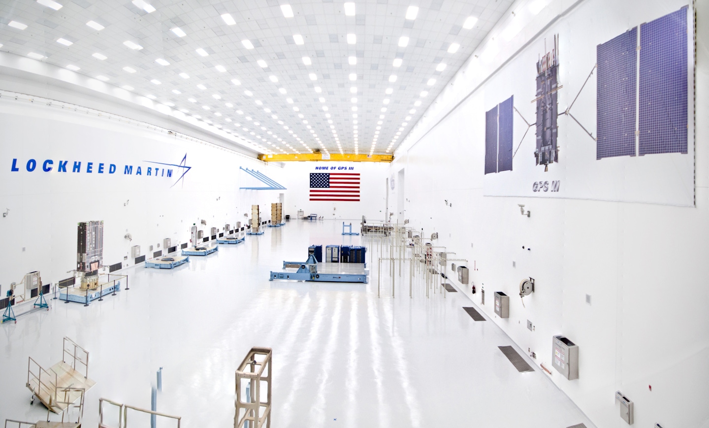 OZ provided architectural design for the GPS III Processing Facility, which assembles and tests next-generation GPS satellites. Built in Lockheed Martin’s former rocket assembly building, the new GPS III Processing Facility has nearly 40,000 sf of assembly and test areas for new GPS III satellites. A 32,900 sf, SCIF-level, Class 100K clean room high bay serves as the “factory floor” and houses assembly stations, a solar array test fixture, and a space vehicle transfer fixture. A 962 sf thermal vacuum chamber and a 2,880- sf two-story anechoic test chamber are also included within the facility. Lockheed personnel oversee key facility operations in four overhead test control rooms.