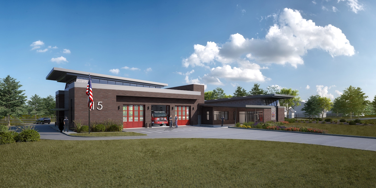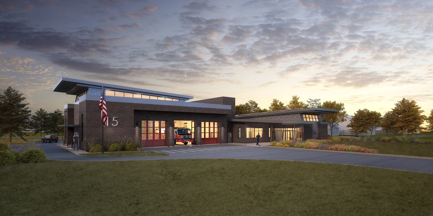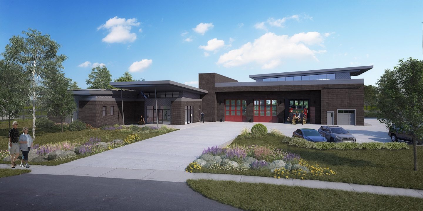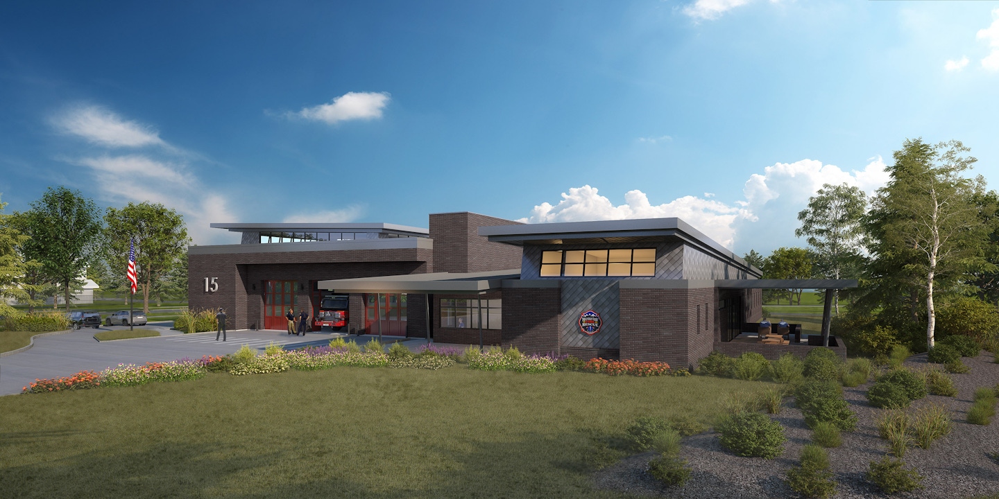 The design of MVFR’s Station No. 15 balances the needs of a modern firehouse with the residents' concerns. Located in the rapidly growing area of Erie, the station fits within the community while minimizing noise and light impact. A proven spatial layout ensures efficient circulation, separating Hot, Warm, and Cold zones. The design includes sloped roofs that blend with the neighborhood and bring natural light into interior spaces. Apparatus, vehicles, and pedestrians move safely and efficiently throughout the site, creating a functional yet community-focused fire station.