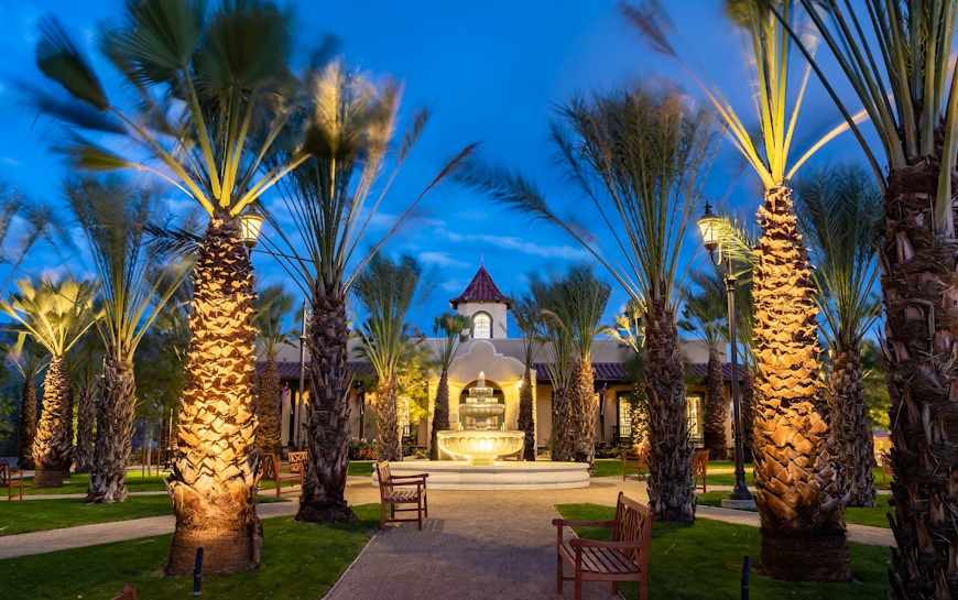 Although construction began in 2017, OZ began designing the master plan and vision for the Oasis in 2012 with the commitment to revitalize the property into a more modern, sustainable and energy efficient vacation destination. At the Ranch, there was focus on complimenting the historical territorial architectural character of the Inn and being sensitive to the surrounding National Park environment. Built over two phases, the redesign called for a new reception building, modernized retail and food and beverage facilities, new Ranch Cottages and surrounding a new lush Town Square. The Town Square replaced a parking lot with fountains and trees and results in a reduced the heat island effect, increased sense of arrival for the resort and provides shading and helps to cool the property. The variety of retail venues include a country store, a boutique and a bike rental and outfitters. The food and beverage venues include a buffet, saloon, an ice cream parlor and an employee dining room.