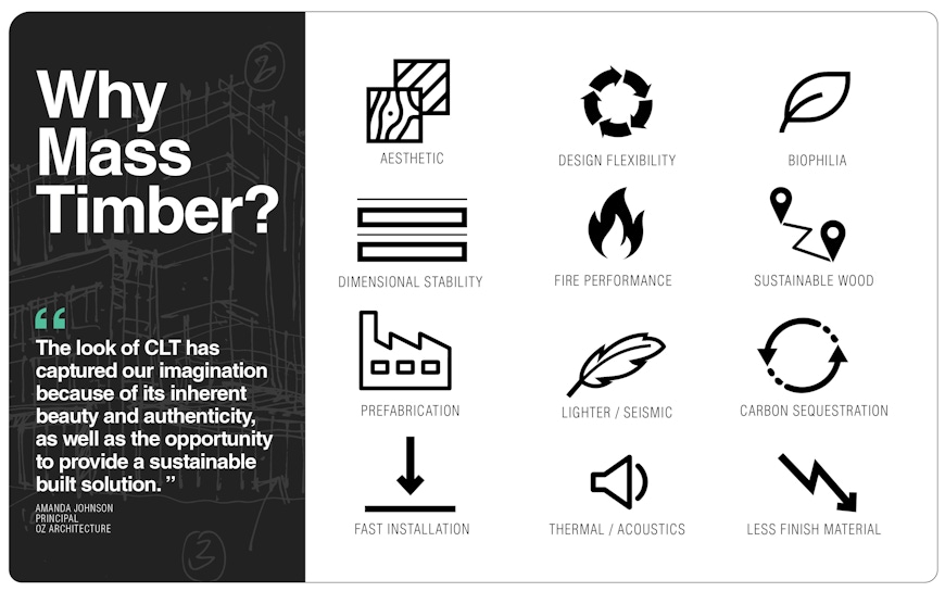 OZ’s expertise in this area is unmatched—we’re proud to have designed the first Timber/CLT office buildings in Denver and Boulder—and we’re always eager to share our knowledge. Thanks to our existing relationships with an extensive network of suppliers, we have a distinct advantage, and our proven experience has delivered numerous innovative and award-winning mass timber projects.