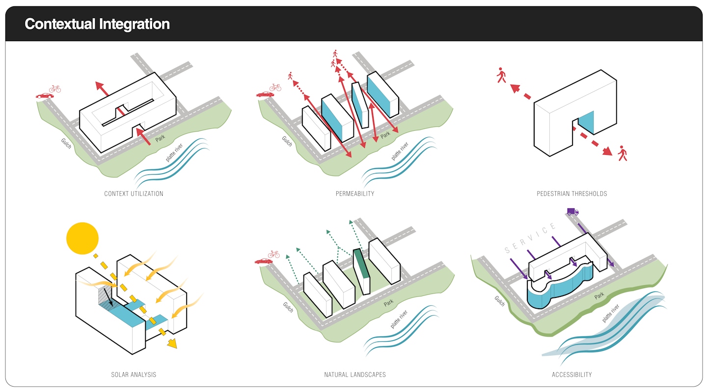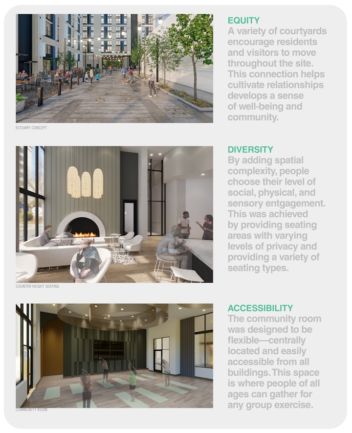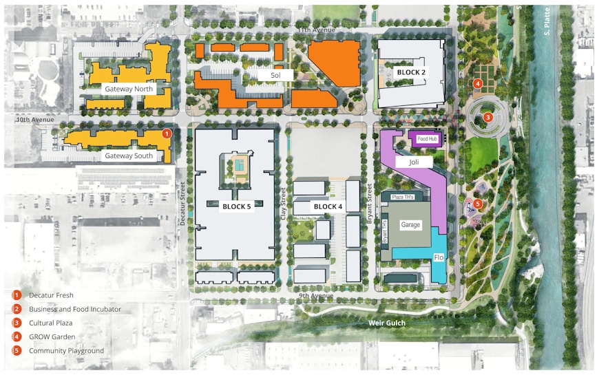 Denver Housing Authority's Sun Valley Block 3 project is a mix of affordable and market-rate housing in a space just west of the Platte River. The program consists of live-work units, age-restricted housing, single and multi-family housing, a food incubator, a parking garage, and an elaborate estuary and park for not only the residents but the general public.