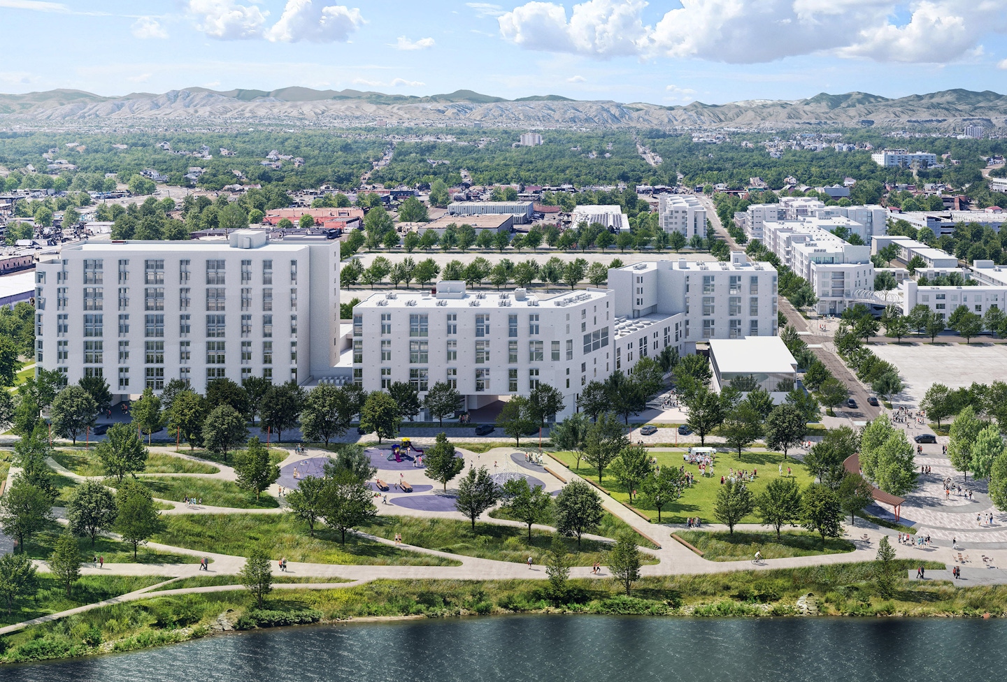 As the first block in the redevelopment of Denver’s Sun Valley neighborhood, the Block 3 project, in many ways, sets the stage for the future transformation of this culturally rich community. Block 3 by OZ is noteworthy for integrating public and semi-public open spaces that connect a new riverfront park with the balance of this unique neighborhood, providing 358 affordable housing units catered to families and seniors.