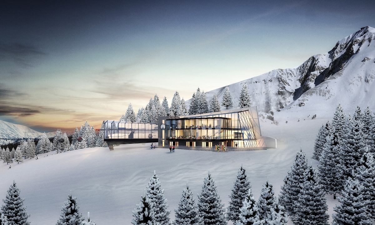 On-Mountain Gondola Terminal + Ski Lodge