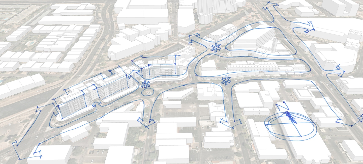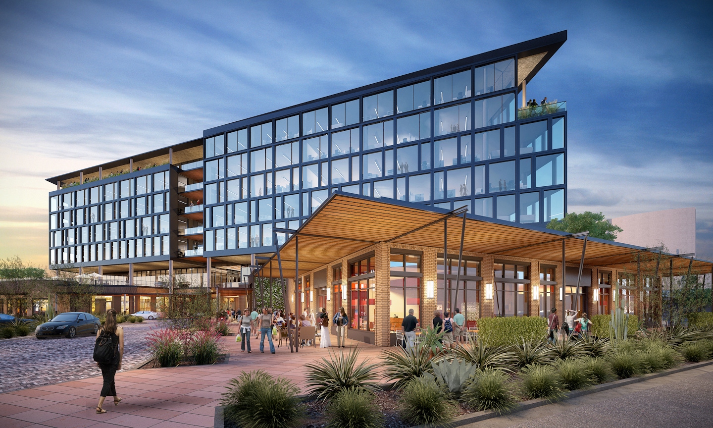 Southbridge seamlessly blends luxury residential, office, and boutique hotel spaces with Old Town Scottsdale’s historic charm, creating vibrant destination spots. OZ’s goal is to integrate new luxury developments on three separate sites within this historic area, merging old and new to foster dynamic interactions. Old Town Scottsdale, “The West’s Most Western Town,” holds a romantic connection to its historical Western character. Our approach respects this heritage while introducing modern elements. The offices rise above a retail streetscape, interwoven within the existing context, ensuring vertical and horizontal connectivity throughout the site and adjacent neighborhoods. Food and beverage options enhance Southbridge’s appeal as a top destination. The boutique hotel offers an intimate, insider’s place to stay in the heart of the action. Using innovative, contemporary materials that evoke historical context, we elevate the urban fabric, creating visually unique, identifiable spaces while maintaining privacy. Luxury residences along the Arizona Canal define the northern boundary of Old Town, completing the retail streetscape and offering full amenities.