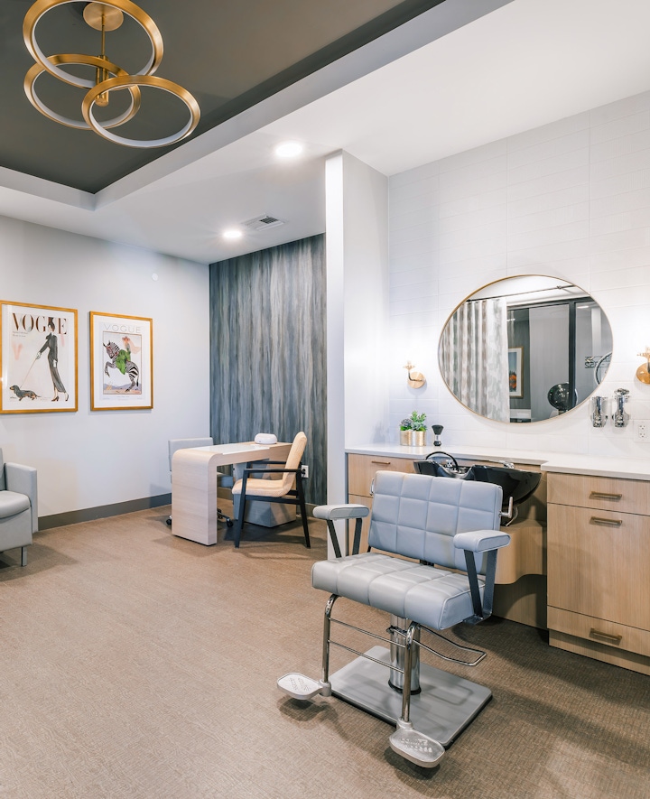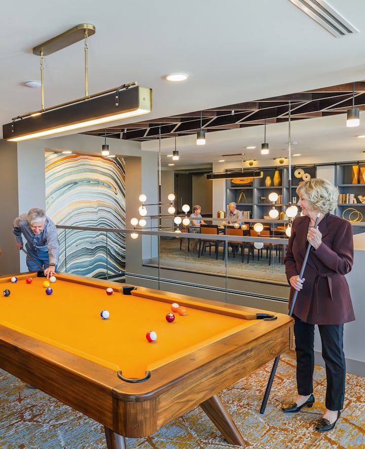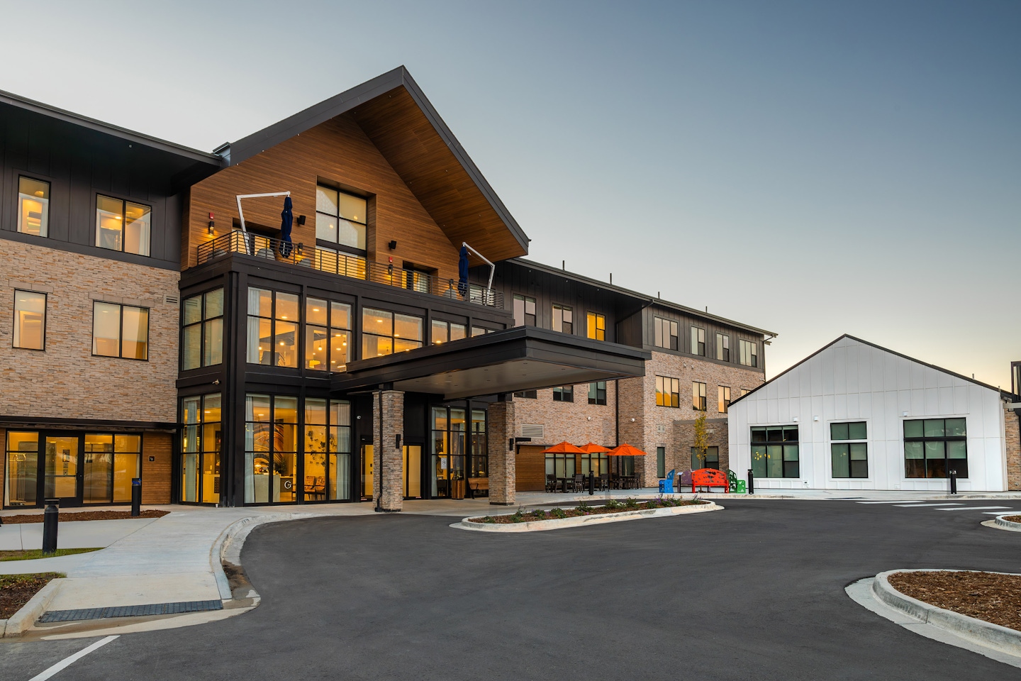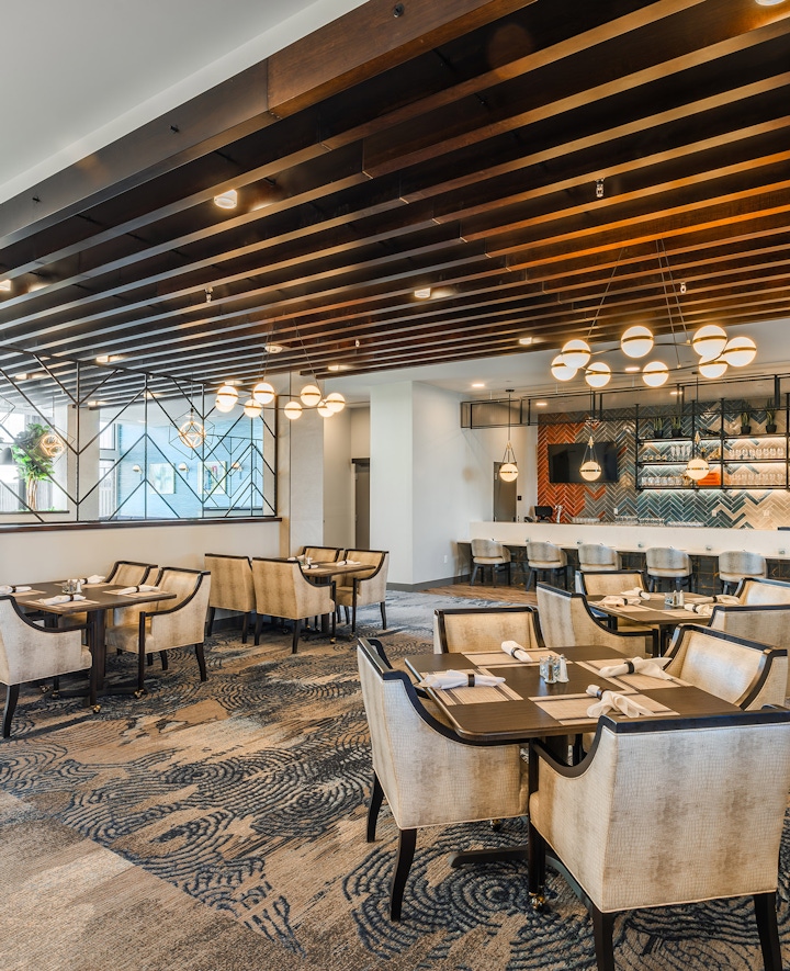 The Gallery at Broomfield stands as a testament to our team's dedication to optimizing the environment and enhancing residents' physical and mental well-being. It was meticulously planned to encourage residents to connect with loved ones, the broader community, and Colorado's scenic beauty. Deliberate measures were taken, such as providing access to sunlight for north-facing single-family homes and establishing a buffer between commercial and residential areas. Onsite walking paths offer diverse outdoor activities, and the southeast plaza can host events like food trucks or farmer’s markets. The building's exterior harmonizes the region's agricultural heritage with modern elements like stone bases and horizontal siding. Internally, a hospitality design approach minimizes walls, promoting activity and socialization in shared spaces; this thoughtful design fosters 'chance socialization' among residents. The assisted living community extends this inclusive approach across three levels, incorporating attached outdoor spaces. Resident suites prioritize natural light and simplicity, with embellished kitchens on the third-floor catering to more independent residents. The design's high ceilings and contemporary finishes create an inviting modern mountain-plains atmosphere.