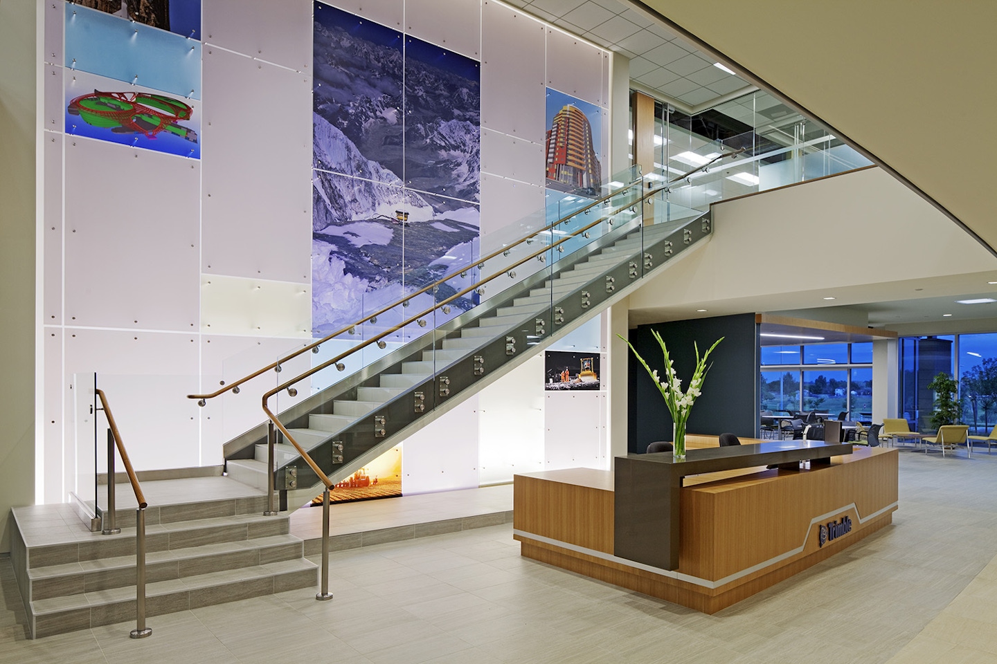 Phase I of the Trimble Campus development was during a time of transition for the company as they were acquiring more software divisions that support their innovative GPS hardware systems. The design created a cultural shift to an energized collaborative environment with an open work lounge, coffee bar, and break area engaging the lobby.