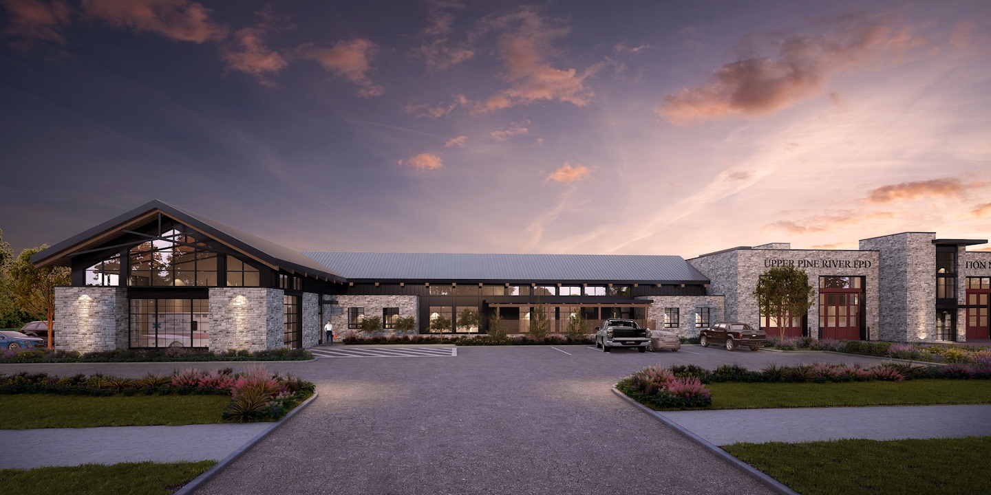 The Upper Pine River Fire Protection District engaged OZ to help envision and design a new Joint Public Safety Facility, including a new fire station and community clinic. The fire station side of the building includes 4 apparatus bays, decontamination zones, an office/ watch room, separated living quarters, a fitness center, building support spaces, and a multi-purpose training/ community room. The community clinic includes a waiting area, private exam rooms, an office, an X-ray room, a lab, an employee breakroom, and an ambulance bay. The community paramedic services will enhance the standard EMS services provided to the district. The project intends to anticipate evolving community needs, centralize public safety services, enhance the area’s resilience, and ensure community service for generations.