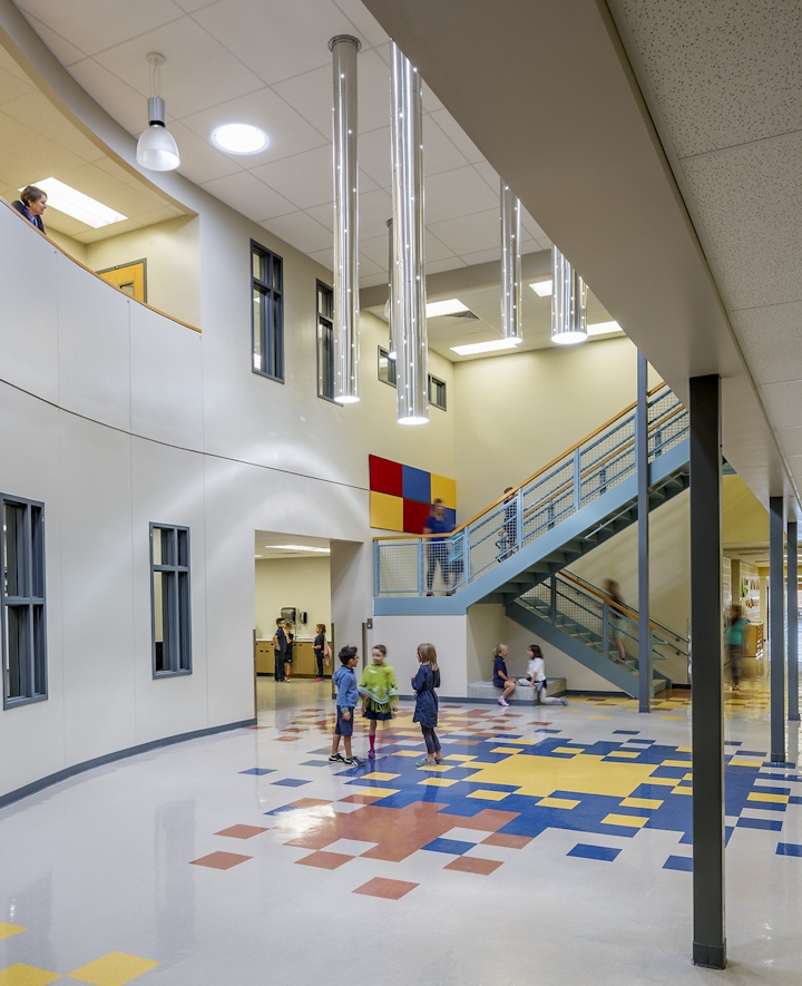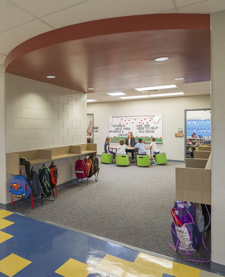 Escuela Valdez was part of Denver Public Schools 2012 bond projects, an elementary remodel and addition. This school serves families from diverse socioeconomic and linguistic backgrounds. This challenging remodel required the students to relocate for one year while the two-story portion of the school was gutted and transformed into a day lit atrium surrounded by dual-language classroom groups, each with shared open spaces that provide flexibility in both learning and instruction.