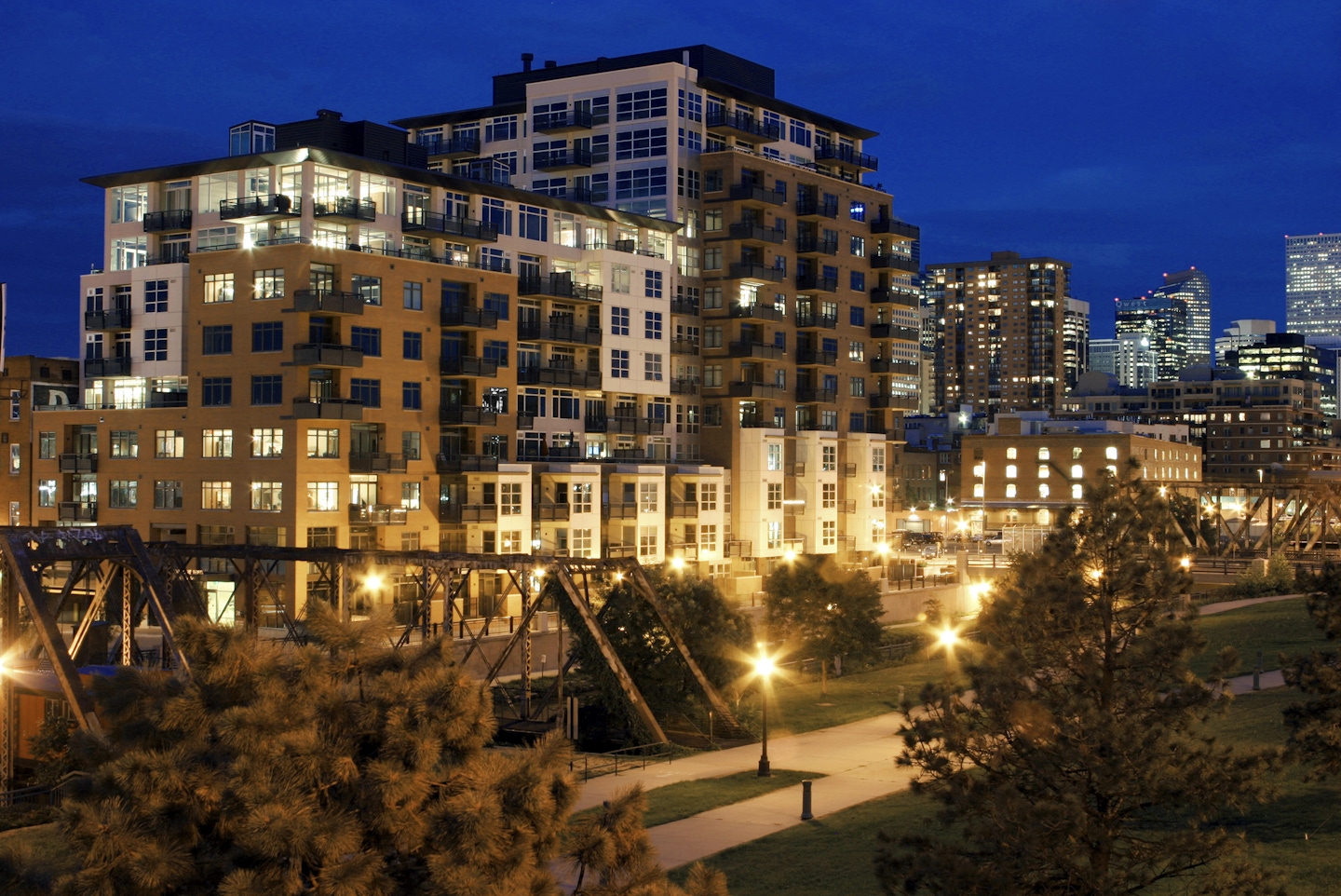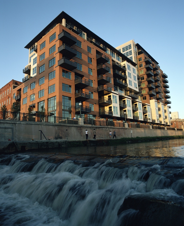 Waterside Lofts is a stylistic connection between LoDo’s historic charm and the modern energy of Denver’s west side. Designed to fit seamlessly into its site—constrained by Cherry Creek, the historic Daniels & Fischer warehouse building, and Wewatta Street—the building steps back strategically to minimize its impact on surrounding streets. The highest portion fronts Wewatta Street and serves as a gateway to Denver's evolving neighborhoods. The exterior blends warm brick, sleek metal panels, exposed concrete, and expansive glass. A variety of balconies and terraces add architectural depth and character. High-end finishes, a fitness center, a business center, and underground parking elevate the resident experience. Waterside Lofts is a testament to OZ’s ability to merge style, function, and context into a cohesive, modern living space.