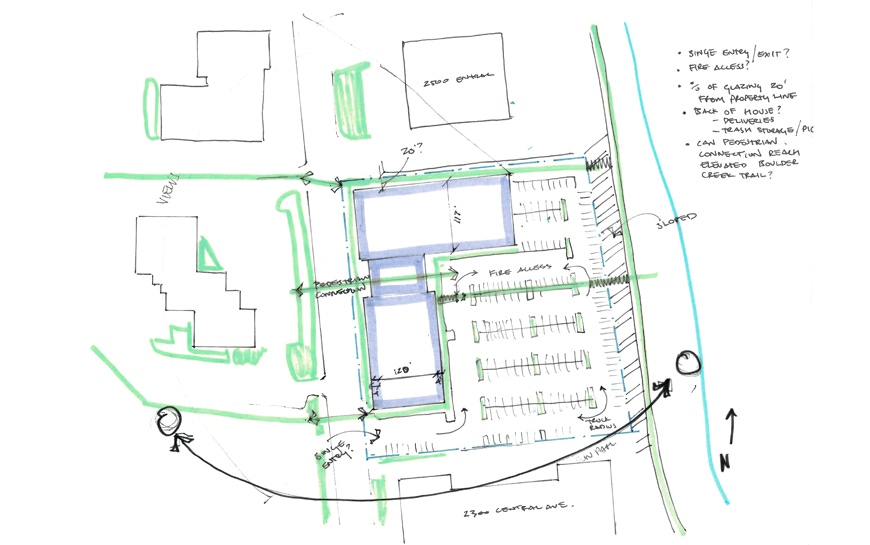 2400 Central epitomizes contemporary office architecture, a study in elegant simplicity with sustainability and outdoor activation at its core. This three-story commercial space features stacked forms that create upper-level outdoor amenities, extensive landscaping, and photovoltaic panels. Its concrete panel façades, glulam trellis entry, and clear glazing balance modernity with natural warmth, honoring the area’s history. The design is situated near a 100-year floodplain and incorporates innovative drainage, rainwater capture, and water quality treatments. Thoughtful material choices and environmental strategies minimize its footprint while maximizing tenant comfort, making 2400 Central a striking, efficient, and timeless addition to its surroundings.