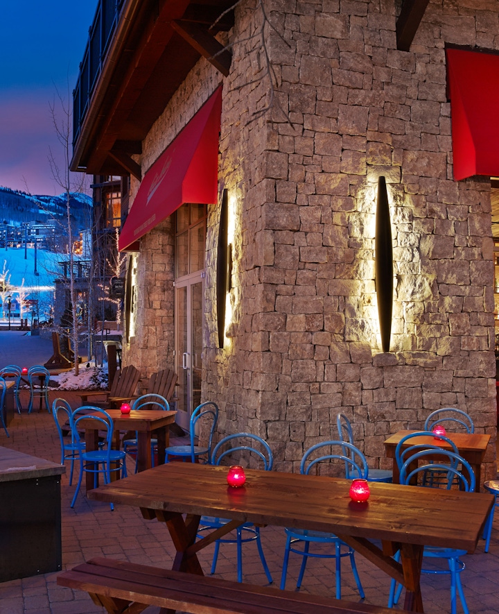 A southeast Asian street food concept located in Snowmass Base Village, Bia Hoi features a rustic industrial interior. Reclaimed wood, comfortable seating, and signature light fixtures provide the base accents for this energized space, with pops of bright color that warm up the winter chill outside. The open plan, casual seating and a bar-centric menu deliver a popular après ski experience.