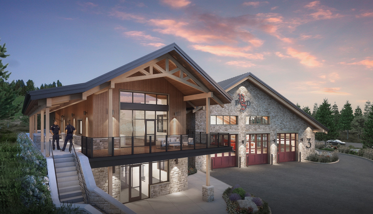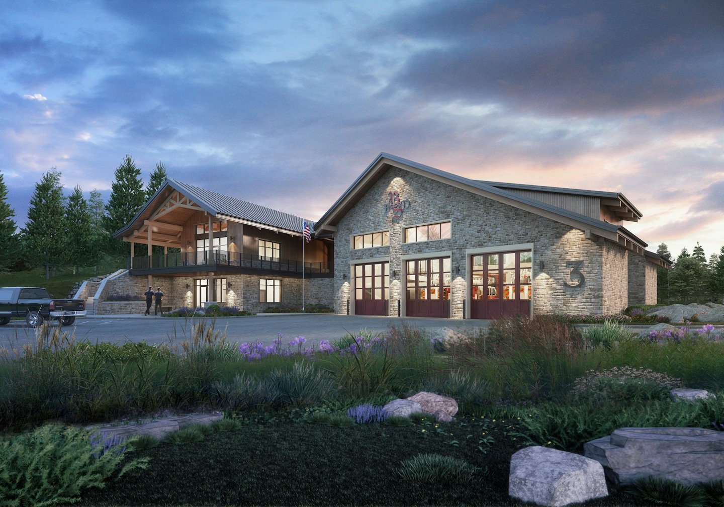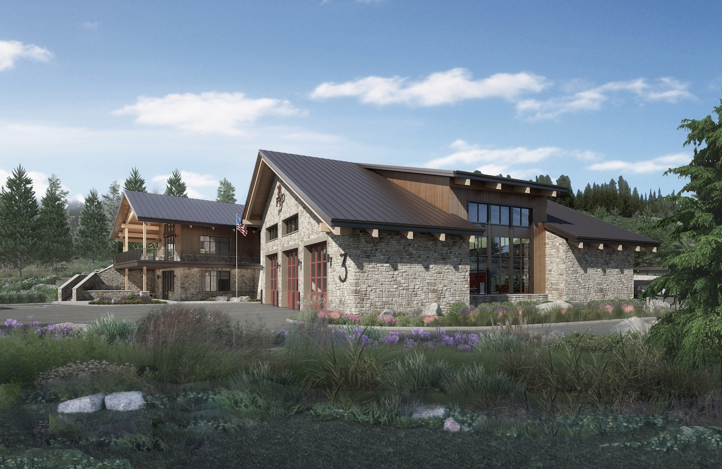 Big Sky Fire Department Station plays an important function as a fire rescue station and a gateway to the Spanish Peaks development in Big Sky, Montana. The design expresses a Civic presence and takes a holistic approach focusing on efficiency, resiliency, permanence, and aesthetics within a budget. Firefighters’ health and well-being inform the building layout, providing healthy, efficient, and comfortable spaces. The exterior shows respect for the natural surroundings and terrain using natural materials, hues, and forms associated with the nearby community in conjunction with the added need for fire mitigation efforts in the Mountainous West. Class A fire-resistant materials, such as stone, fire-treated wood, mass timber, and standing seam metal roofing, are utilized for their fire resistance. Mechanical and ventilation systems and building wall cavity vents are designed to resist fire and ember intrusion. Wildlife fire mitigation extends to the site via the landscape design. The design offers the public an attractive example of fire-resistant plants, materials, and layouts appropriate within the Wildland Urban Interface.