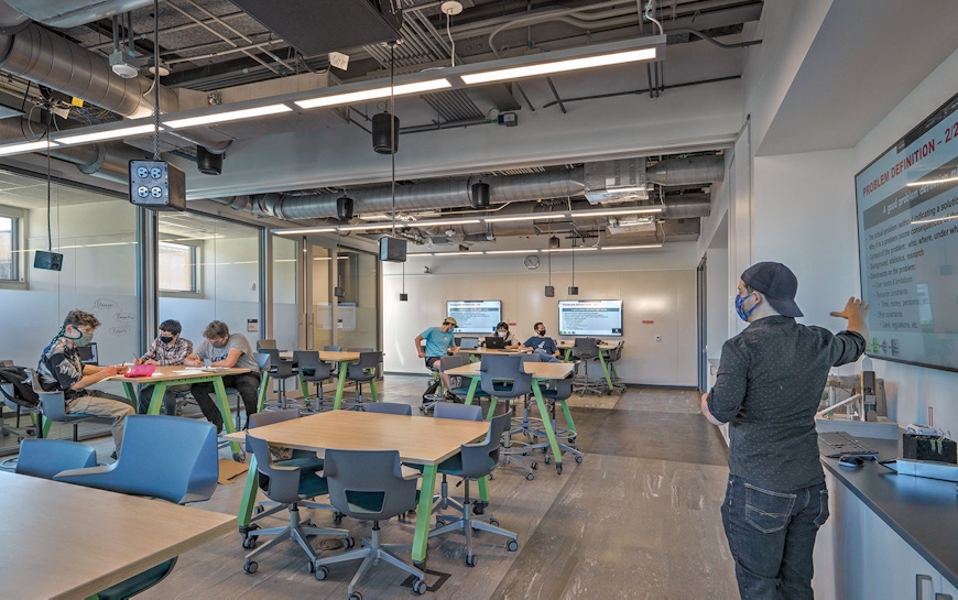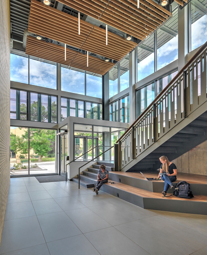 OZ envisioned McNeil Hall as a lively hub for activity and learning, where students can meet for classes, collaborate, and discover new creative pursuits. This project also includes the School of Mines’ first campus parking structure, adding 750 spaces to allow more flexible parking options for students and staff. McNeil Hall houses the Engineering, Design & Society Department and is the new home of Cornerstone and Capstone Design. Located in the western region of campus, the building is designed to reflect the campus architecture in a unified composition that integrates the structure of the building. Classrooms are designed for collaboration, with multiple display screens, walls you can write on, and a modern aesthetic, flexible in both furniture height and location. OZ worked closely with the School of Mines to finalize the site selection for the new parking structure, involving the neighboring community to build consensus around the project.