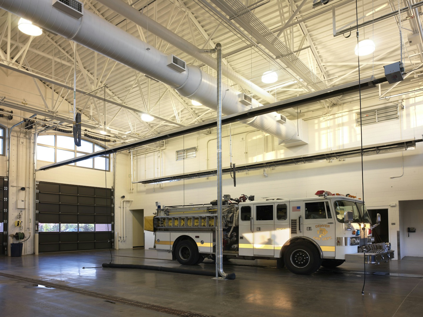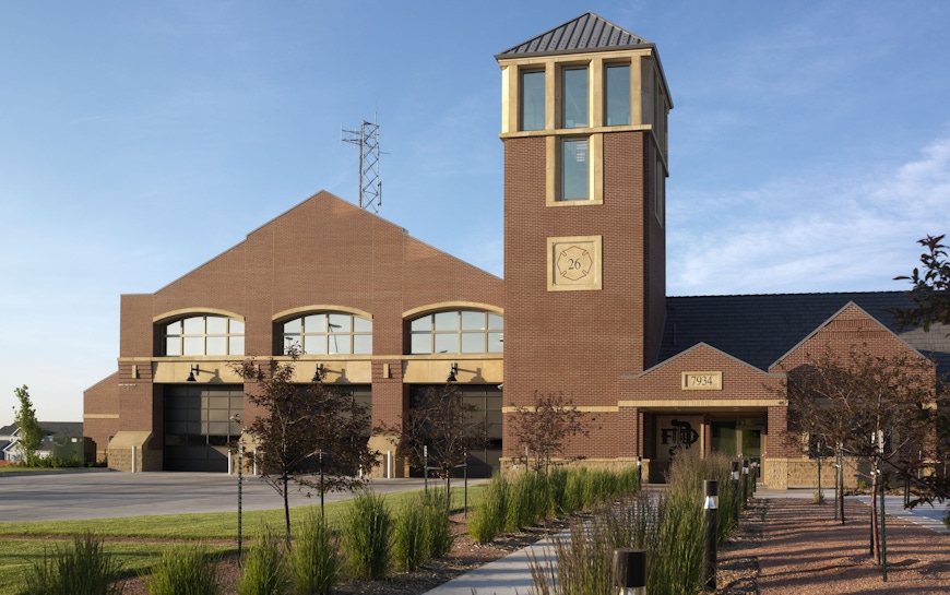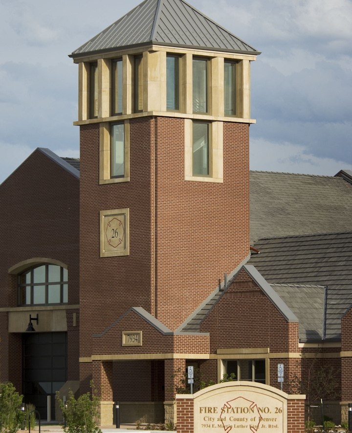 Returning to firehouse design that creates a civic presence and a true neighborhood landmark, this traditionally-styled station boasts state-of-the-art amenities. The new station houses 32 firefighters working in three shifts. The 75-foot tower is functional for hose drying and is used for rappelling exercises and other firefighter training. Unusual for an urban setting, the station’s pull-through design enhances pedestrian safety while decreasing response time. The facility includes three apparatus bays, a separate public zone with a meeting room that neighbors can reserve, and a private zone surrounding an interior courtyard for natural daylight and privacy for the firefighters.