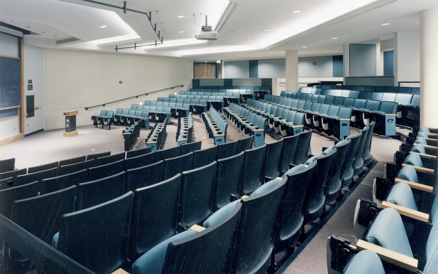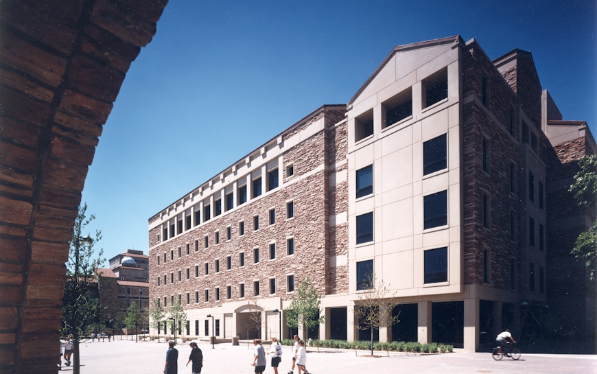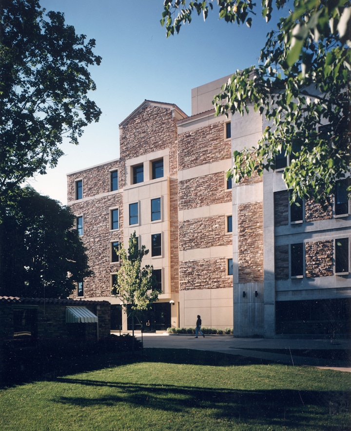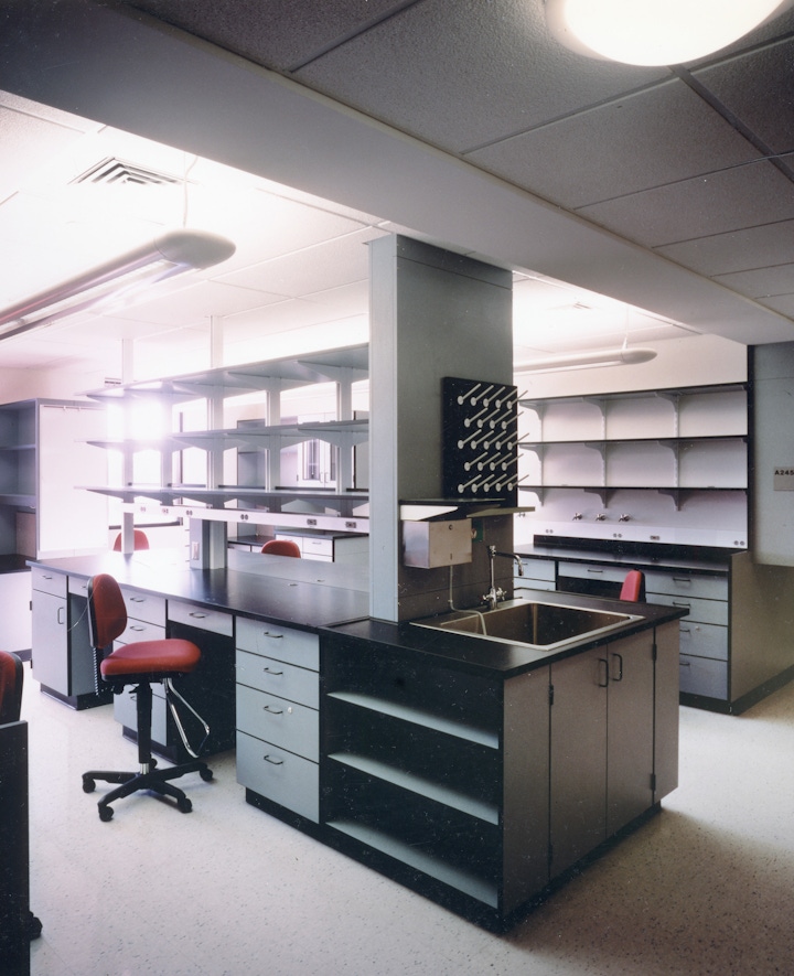 The Gold Biosciences Building (formerly the Mollecular, Cellular, and Developmental Biology Building) houses teaching/wet labs and support facilities for molecular, cellular, and developmental biology research. The ground floor includes teaching labs and departmental offices; the four upper floors are dedicated to research and contain labs, lab support, faculty offices, and a library. The building also includes a vivarium, a 250-seat auditorium, and greenhouses. Occupying the basement of the Gold Biosciences Building, the transgenic animal facility’s mechanical features include a backup emergency power system, filtered and exhausted air with reclaim, backup air supply and exhaust fans, and a hepa-filtered, 100% outside air supply. Other features include an isolation quarantine area for new animals, clean areas, cage wash and autoclave equipment, gasketed-steel light fixtures, and non-disruptive security entrances.