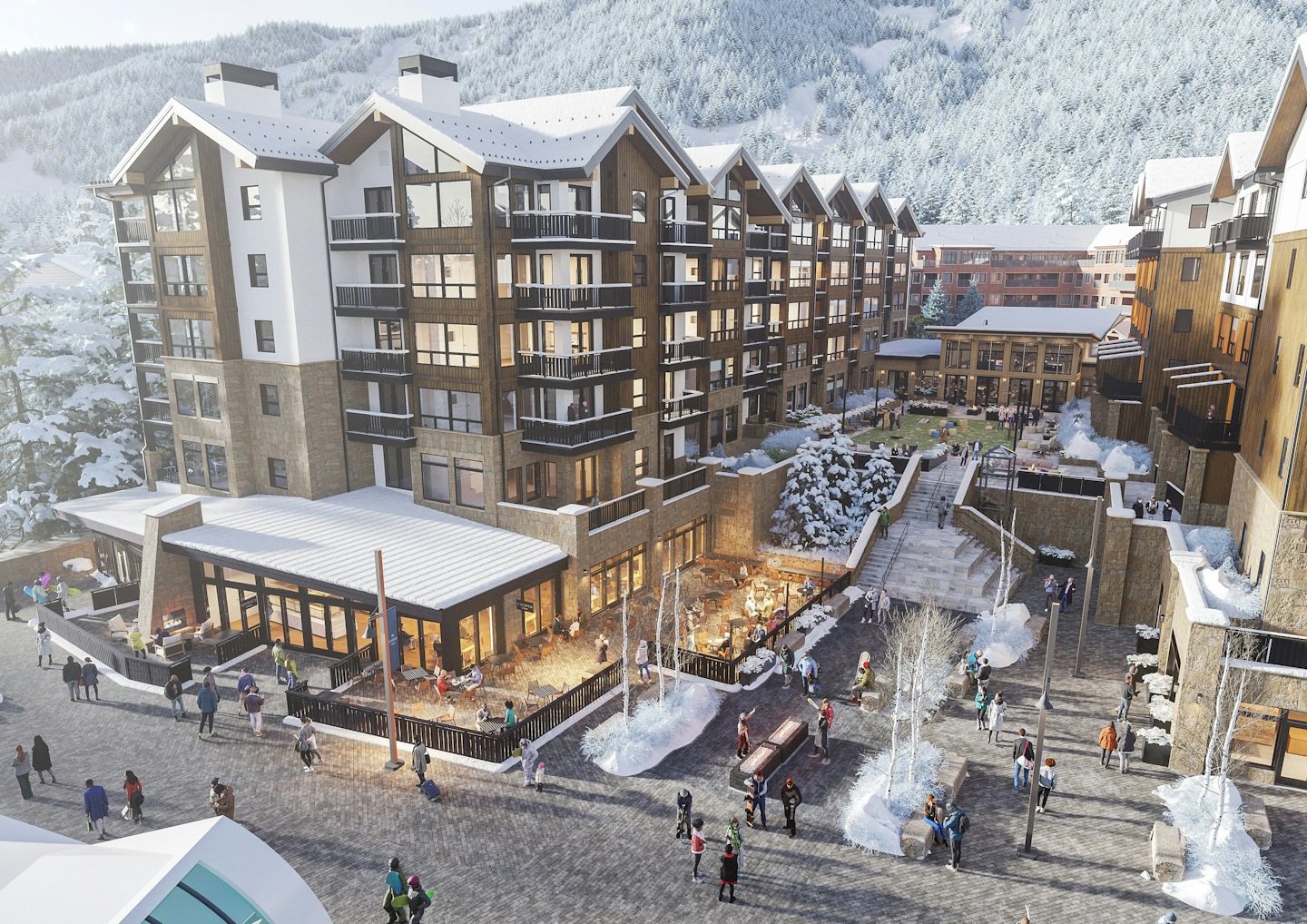 Kindred Resort is Keystone’s first major development in 20 years, completing the River Run base area with a modern, amenity-rich expansion. Inspired by Colorado’s outdoor beauty, OZ designed a sustainable, energy-efficient hotel aiming for Green Globes Certification, with 100+ rooms, a spa, a restaurant, and an event space. The mixed-use development includes two restaurants, retail, a ski school, a rental shop, a signature ski club, and below-grade parking. Located steps from the River Run gondola, Kindred Resort enhances the area with its thoughtful design and community-focused improvements, bringing fresh energy to Keystone's base.