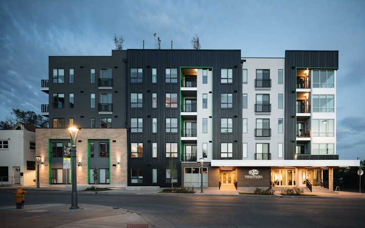 Neon Local reflects the energy of Broadway and shares the richness in scale, texture, and materiality with the historic Baker neighborhood. Its design nods to the area's gabled roofs and creates a modern yet harmonious presence in the South Broadway corridor. With over 13,800 square feet of ground-floor retail and restaurants, plus 238 apartments above, it activates both the commercial corridor and surrounding neighborhood. Ground-level units along Bayaud and Archer enhance street-level engagement. A west-facing rooftop terrace offers outdoor amenities and stunning Front Range views, making Neon Local a vibrant addition to the area.
