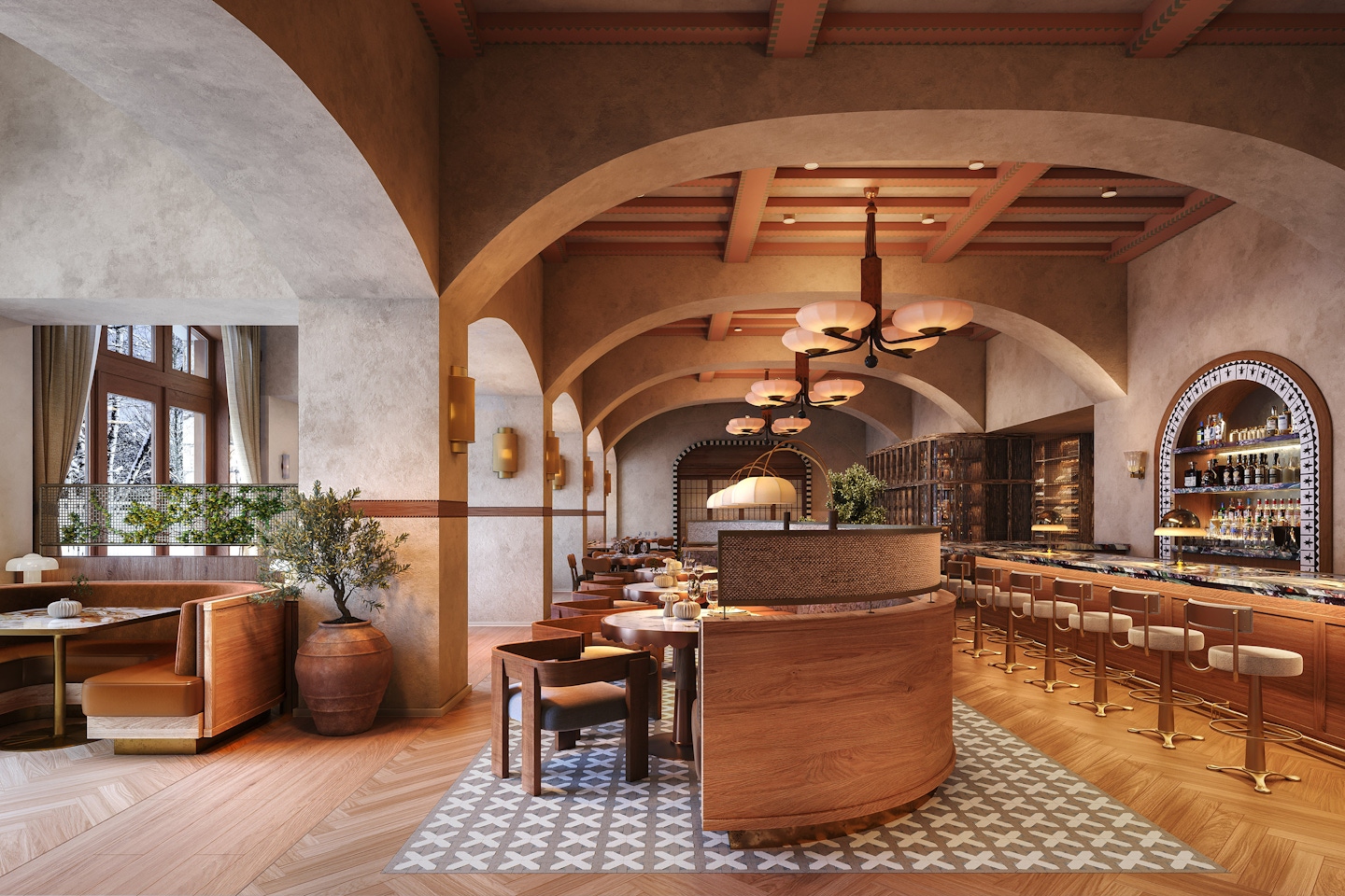 Collaborating with Studio Collective, OZ reimagined the Four Seasons Vail restaurant space into Tavernetta Vail, an Italian-inspired dining destination infused with Vail’s alpine charm. The design balances refined luxury with inviting comfort, transitioning seamlessly from breakfast to dinner with year-round outdoor seating. A welcoming, intimate atmosphere was created with warm oak flooring, plaster walls, hand-painted motifs, and custom lighting. A multicolored marble bar anchors the space, while a rustic stone fireplace and reclaimed timber mantel add a tactile, Colorado-inspired touch. Outdoor fire pits and thoughtfully-designed patio seating connect restaurant guests to nature. The OZ + Studio Collective partnership ensured expert coordination and seamless execution, delivering a timeless, elegant space that celebrates the art of fine dining in the Rockies.