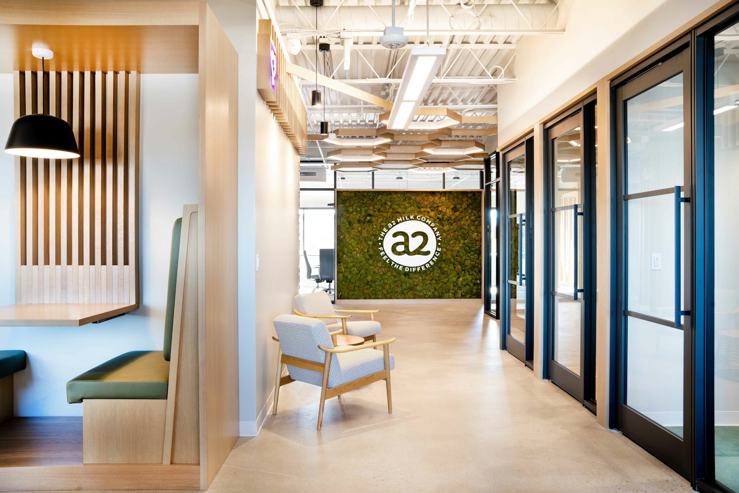 The a2 Milk Company is a premium branded dairy nutritional company that is expanding their offices into Colorado. OZ was selected to design office renovations for two of their locations, most recently their North American Headquarters in Boulder.