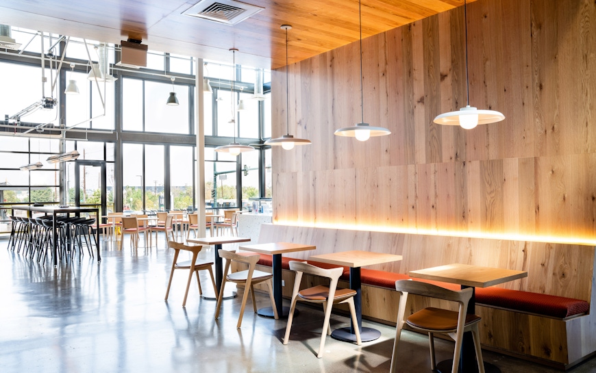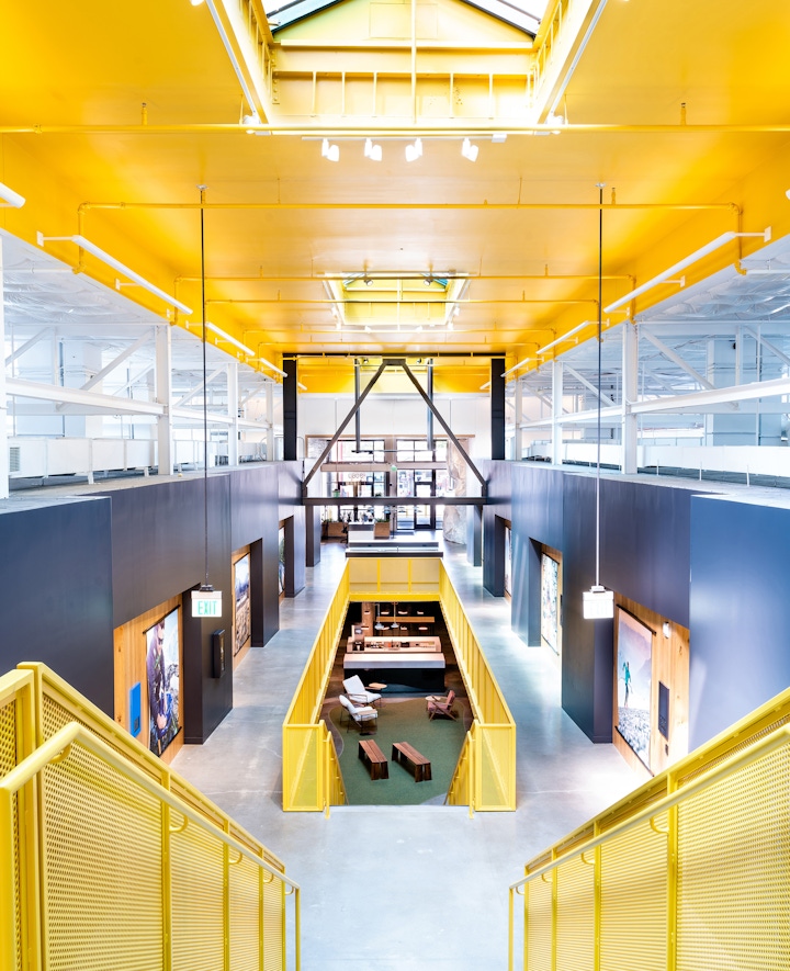 VF Corp’s adaptive reuse project transformed an existing manufacturing building into an R&D facility, enabling their outdoor brands to experiment with and test new product materials. VF Corp’s headquarters and testing lab were relocated from Oakland to Denver's RiNo neighborhood, streamlining resources for their outdoor brands under one roof. The facility contains a variety of additional spaces to support VF Corp’s mission including brand showrooms, photo studios, an innovation center, a pro athlete lounge, offices, and meeting rooms to cater comprehensively to VF Corp's needs.